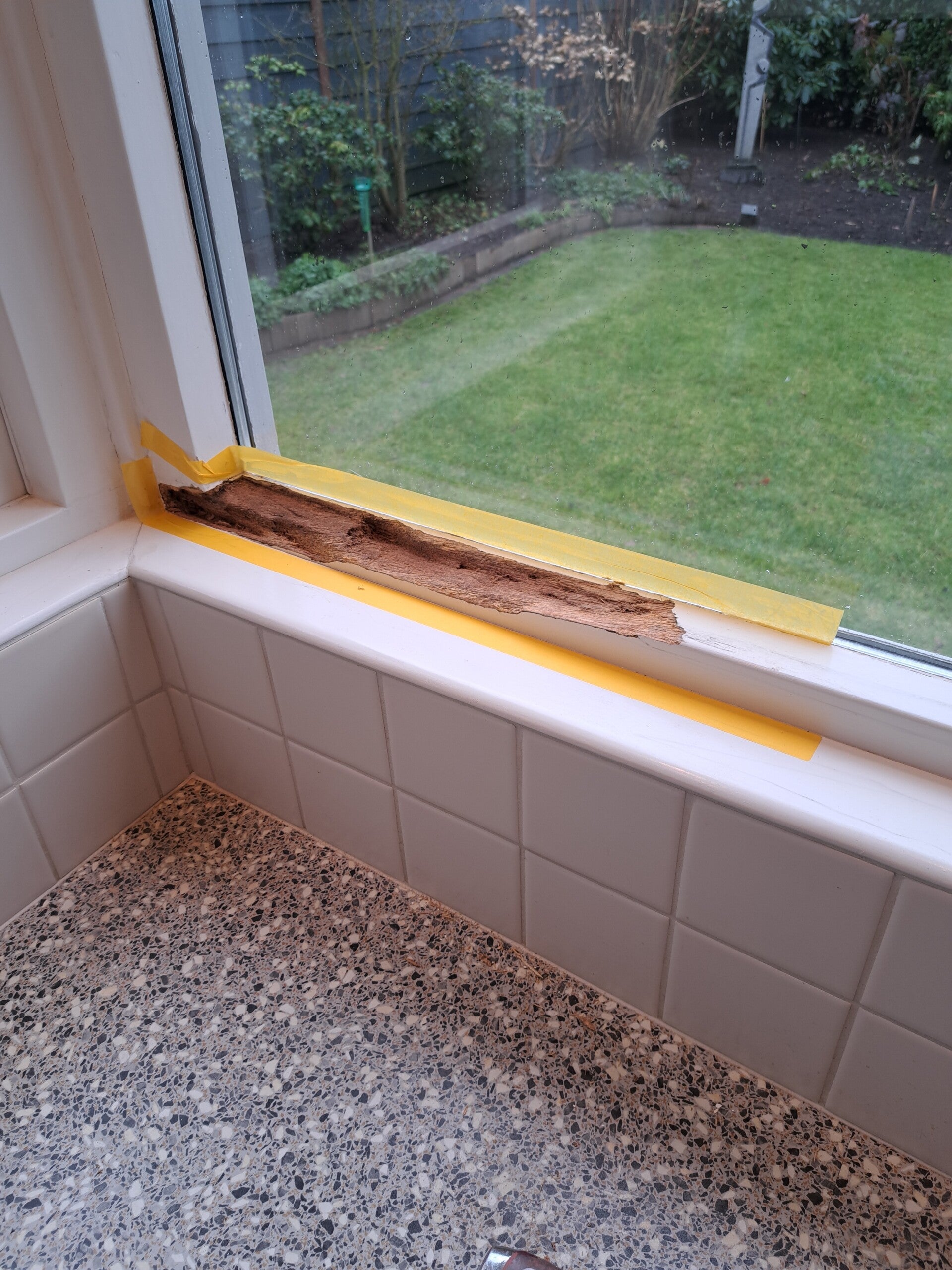 - het hout op zachte houtrot plekken en daar omheen verwijderen